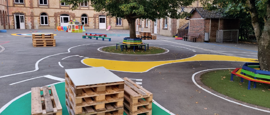 répartis sur 6 classes, de la petite section de maternelle au CM2. Petits et grands doivent y trouver leur place et grandir dans le respect de chacun et de soi-même. La cour de l’école a été refaite il y a 3 ans. Il a fallu l’aménager afin de permettre aux élèves de profiter de cet espace de détente. Avec de nouveaux équipements, la cour de récréation est devenue un espace d’apprentissage, un lieu de découverte d’expérimentation et d’expression. Grâce à vous l’école a collecté 6 000 €. Un grand merci !