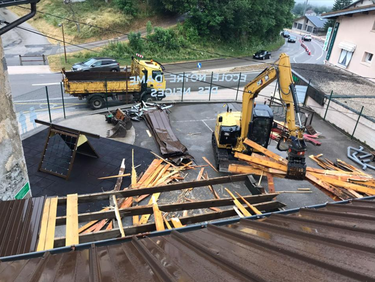 Cependant, de graves dégradations de la charpente ont été constatées. Le danger était immédiat : la toiture menaçait de s’effondrer. Il a fallu démolir et sécuriser en urgence le bâtiment, puis entreprendre la réfection complète de la toiture, pour un montant total de 500 000 €.